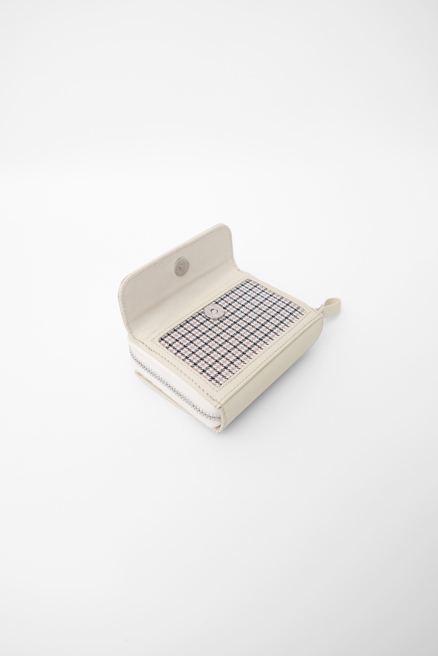 What makes BERRIE truly unique is its dual-sided design. One side features a classic houndstooth pattern, adding a touch of character and texture, while the other side is finished in pure calf leather for a clean, timeless look. Simply switch sides to refresh your style — one wallet, two distinct expressions.